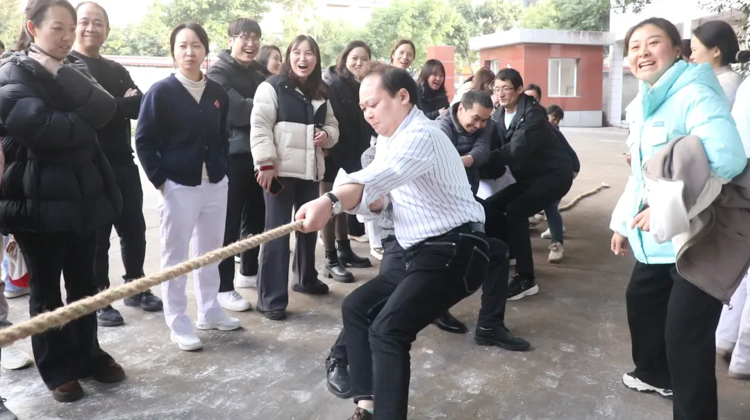 为丰富职工精神文化生活,增强团队凝聚力,12月25日下午,我院“医路同心 乐享运动”职工趣味运动会在院运动场欢乐举行。医院领导班子与200余名职工齐聚一堂,在冬日的暖阳下共同挥洒汗水、绽放笑容,以运动欢庆新元伊始,以协作共启美好序章。 本次运动会以趣味性、团队协作性和全员参与性为核心,精心设置了鼓动人心、多人多足赛跑、男女混合跳绳、踢毽子及拔河等多个项目,融合体能、技巧与团队合作于一体,旨在让大家暂离忙碌的工作,在运动中放松身心、在协作中增进情谊。